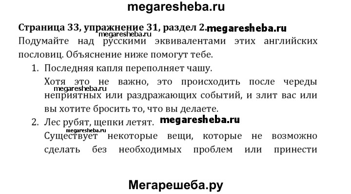 Подробный решебник (ГДЗ) по Английскому языку за 8 (восьмой) класс рабочая тетрадь Activity Book - готовый ответ unit 2 - 31. Авторы учебника: Афанасьева, Михеева, Углубленный уровень. Издательство: Просвещение 2015.