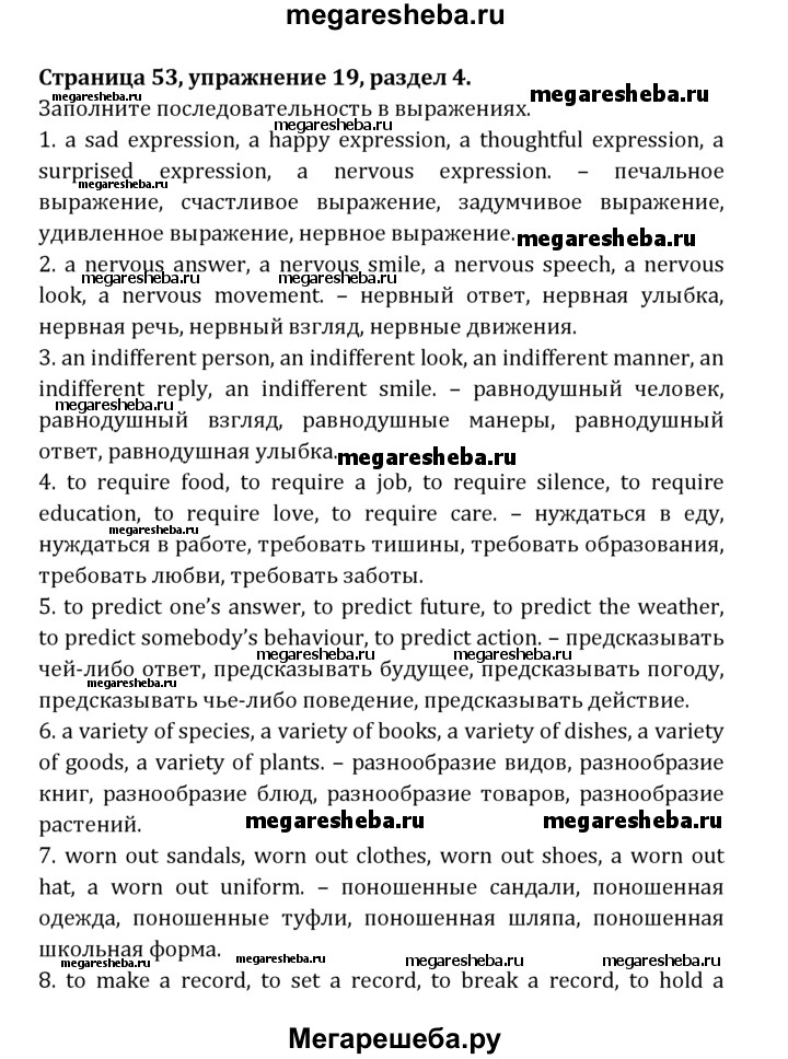 Подробный решебник (ГДЗ) по Английскому языку за 8 (восьмой) класс рабочая тетрадь Activity Book - готовый ответ unit 4 - 19. Авторы учебника: Афанасьева, Михеева, Углубленный уровень. Издательство: Просвещение 2015.