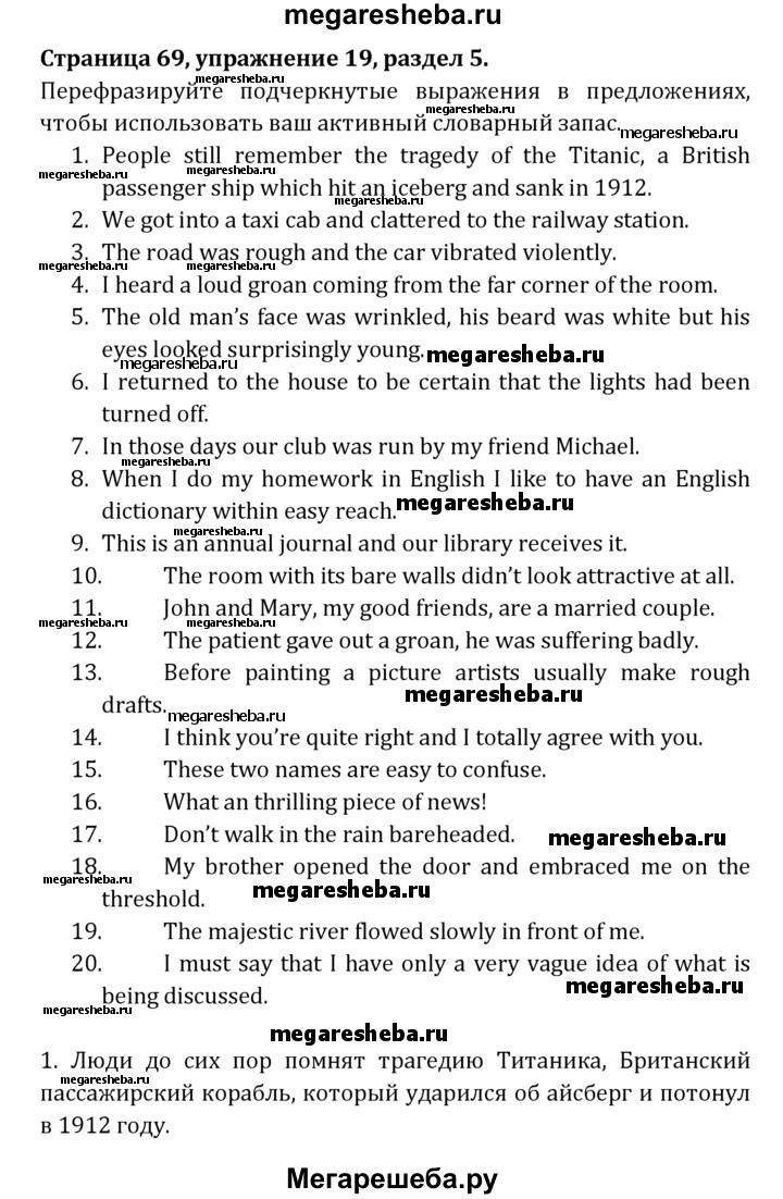 Подробный решебник (ГДЗ) по Английскому языку за 8 (восьмой) класс рабочая тетрадь Activity Book - готовый ответ unit 5 - 19. Авторы учебника: Афанасьева, Михеева, Углубленный уровень. Издательство: Просвещение 2015.