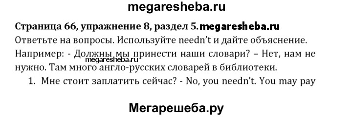 Подробный решебник (ГДЗ) по Английскому языку за 8 (восьмой) класс рабочая тетрадь Activity Book - готовый ответ unit 5 - 8. Авторы учебника: Афанасьева, Михеева, Углубленный уровень. Издательство: Просвещение 2015.