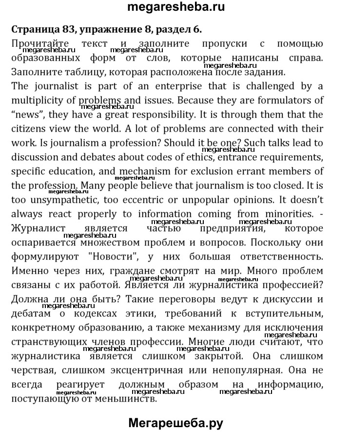 ГДЗ по английскому языку 8 класс Афанасьева рабочая тетрадь Activity Book Углубленный уровень unit 6 - 8