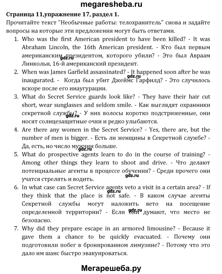 Подробный решебник (ГДЗ) по Английскому языку за 8 (восьмой) класс Student's Book - готовый ответ раздел 1 - 17. Авторы учебника: Афанасьева, Михеева, Углубленный уровень. Издательство: Просвещение 2014.