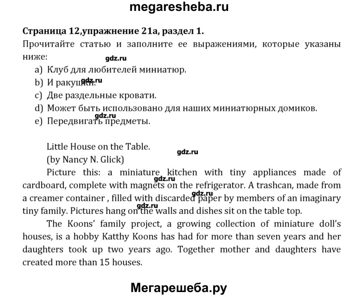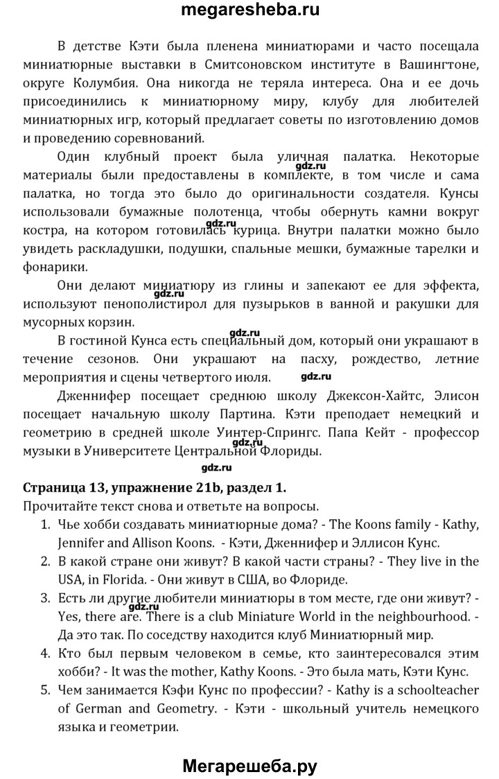 Подробный решебник (ГДЗ) по Английскому языку за 8 (восьмой) класс Student's Book - готовый ответ раздел 1 - 21. Авторы учебника: Афанасьева, Михеева, Углубленный уровень. Издательство: Просвещение 2014.