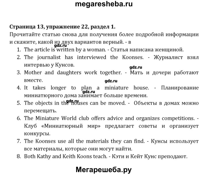 Подробный решебник (ГДЗ) по Английскому языку за 8 (восьмой) класс Student's Book - готовый ответ раздел 1 - 22. Авторы учебника: Афанасьева, Михеева, Углубленный уровень. Издательство: Просвещение 2014.