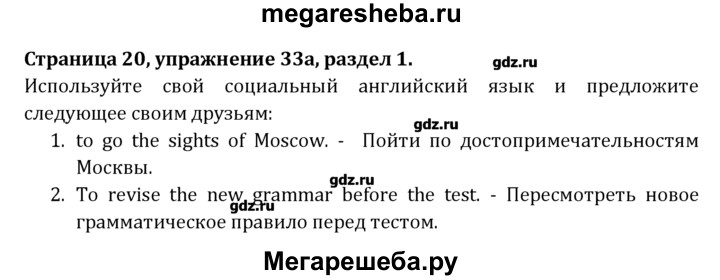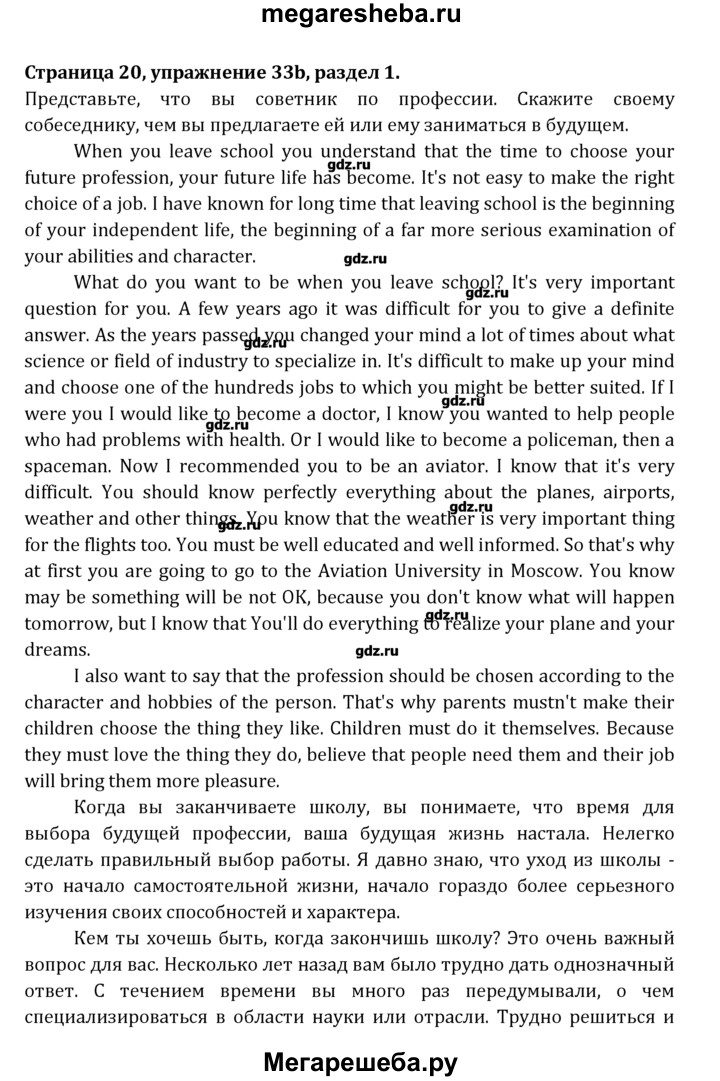 Подробный решебник (ГДЗ) по Английскому языку за 8 (восьмой) класс Student's Book - готовый ответ раздел 1 - 33. Авторы учебника: Афанасьева, Михеева, Углубленный уровень. Издательство: Просвещение 2014.