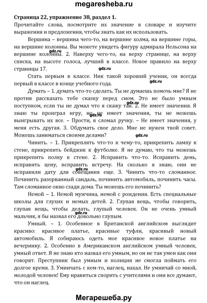Подробный решебник (ГДЗ) по Английскому языку за 8 (восьмой) класс Student's Book - готовый ответ раздел 1 - 38. Авторы учебника: Афанасьева, Михеева, Углубленный уровень. Издательство: Просвещение 2014.