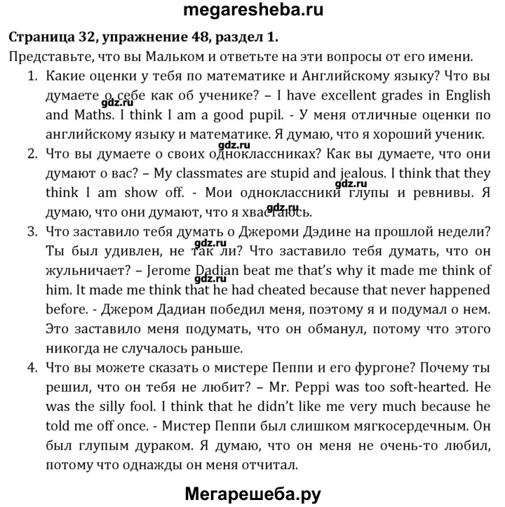Подробный решебник (ГДЗ) по Английскому языку за 8 (восьмой) класс Student's Book - готовый ответ раздел 1 - 48. Авторы учебника: Афанасьева, Михеева, Углубленный уровень. Издательство: Просвещение 2014.