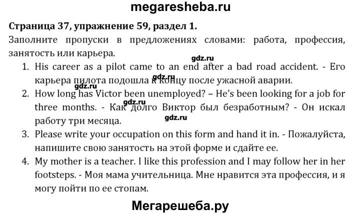 Подробный решебник (ГДЗ) по Английскому языку за 8 (восьмой) класс Student's Book - готовый ответ раздел 1 - 59. Авторы учебника: Афанасьева, Михеева, Углубленный уровень. Издательство: Просвещение 2014.