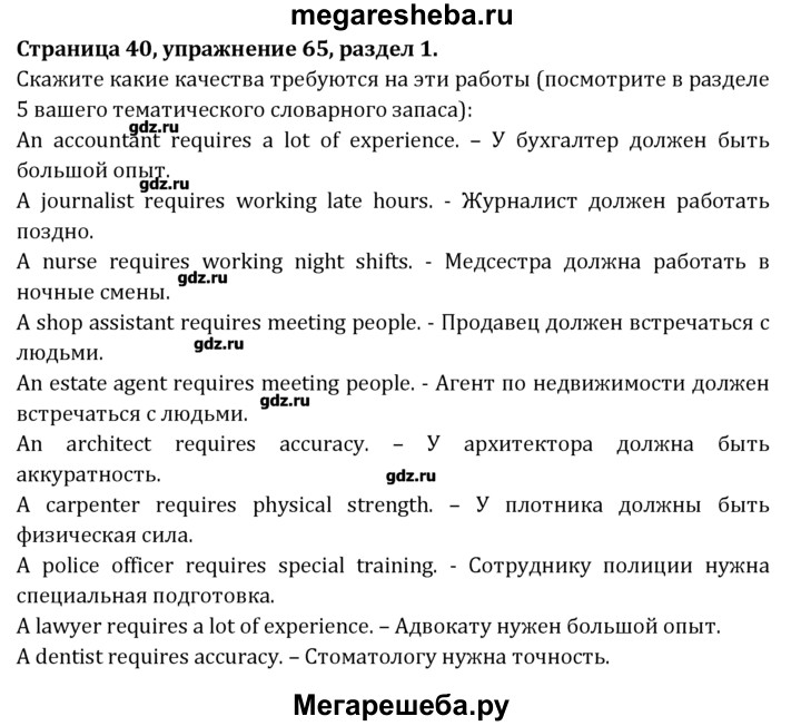 Подробный решебник (ГДЗ) по Английскому языку за 8 (восьмой) класс Student's Book - готовый ответ раздел 1 - 65. Авторы учебника: Афанасьева, Михеева, Углубленный уровень. Издательство: Просвещение 2014.