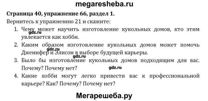 ГДЗ по английскому языку 8 класс Афанасьева Student's Book Углубленный уровень раздел 1 - 66