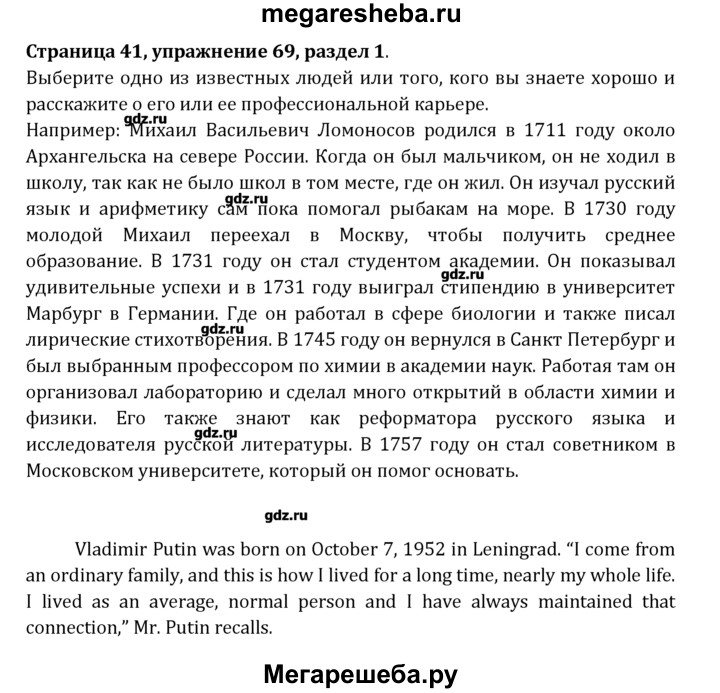 Подробный решебник (ГДЗ) по Английскому языку за 8 (восьмой) класс Student's Book - готовый ответ раздел 1 - 69. Авторы учебника: Афанасьева, Михеева, Углубленный уровень. Издательство: Просвещение 2014.