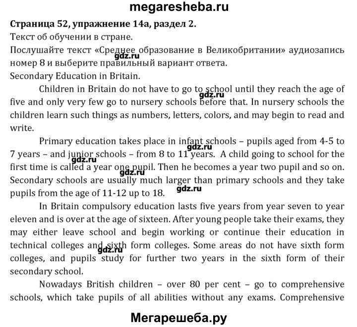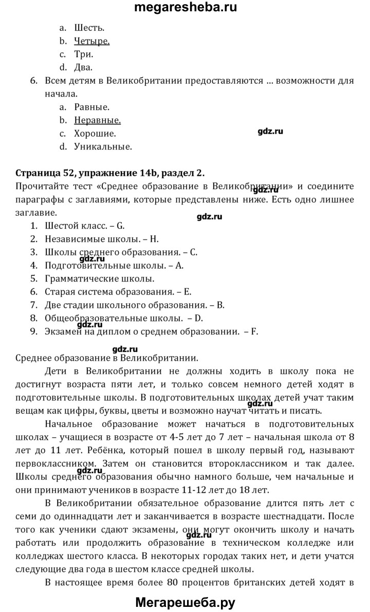 Подробный решебник (ГДЗ) по Английскому языку за 8 (восьмой) класс Student's Book - готовый ответ раздел 2 - 14. Авторы учебника: Афанасьева, Михеева, Углубленный уровень. Издательство: Просвещение 2014.