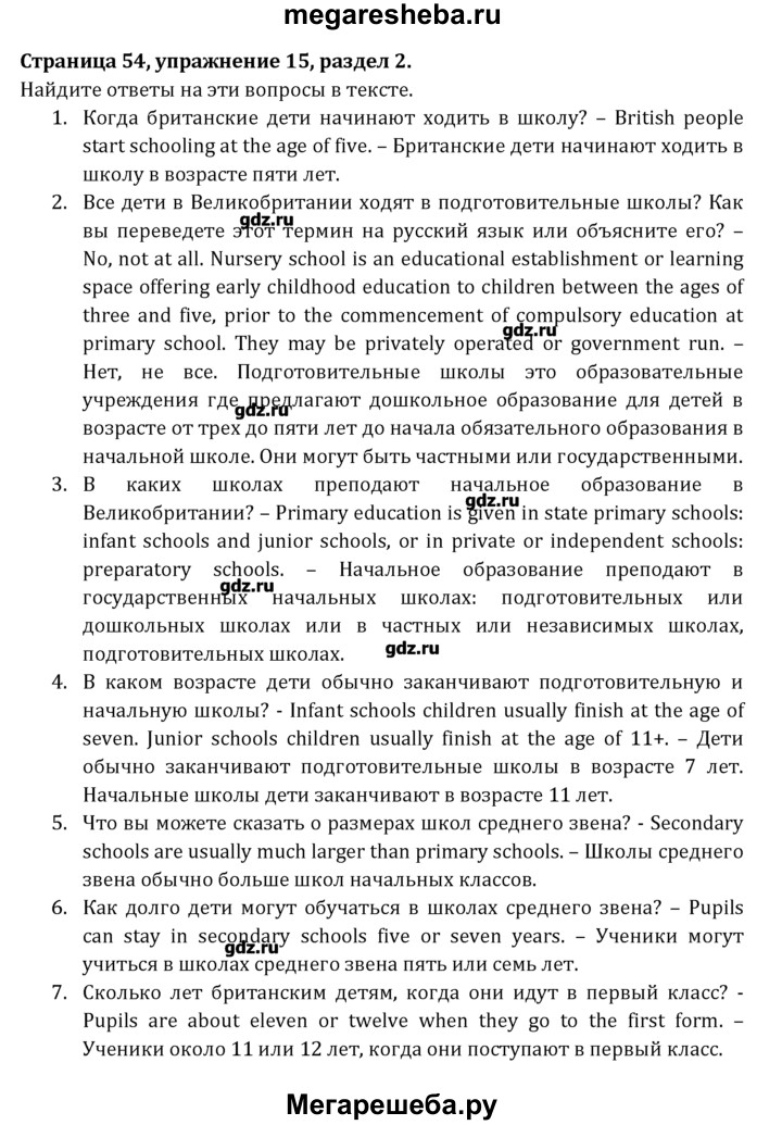 Подробный решебник (ГДЗ) по Английскому языку за 8 (восьмой) класс Student's Book - готовый ответ раздел 2 - 15. Авторы учебника: Афанасьева, Михеева, Углубленный уровень. Издательство: Просвещение 2014.
