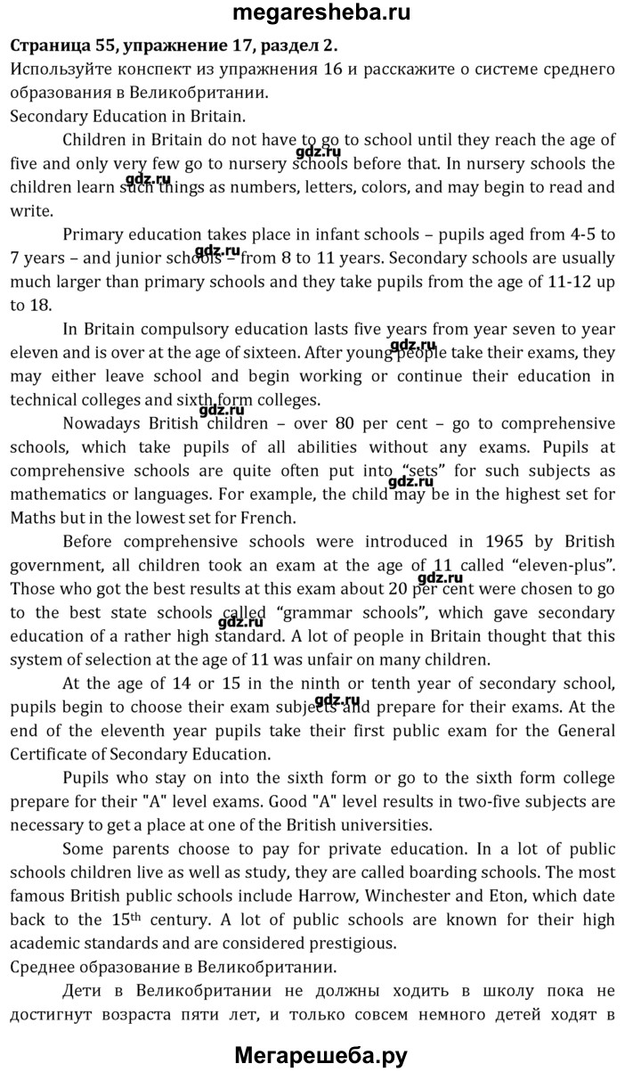 Подробный решебник (ГДЗ) по Английскому языку за 8 (восьмой) класс Student's Book - готовый ответ раздел 2 - 17. Авторы учебника: Афанасьева, Михеева, Углубленный уровень. Издательство: Просвещение 2014.