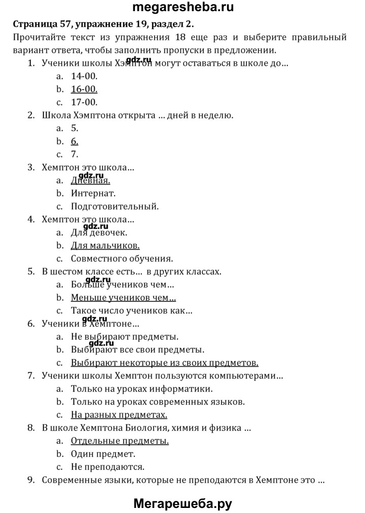 Подробный решебник (ГДЗ) по Английскому языку за 8 (восьмой) класс Student's Book - готовый ответ раздел 2 - 19. Авторы учебника: Афанасьева, Михеева, Углубленный уровень. Издательство: Просвещение 2014.