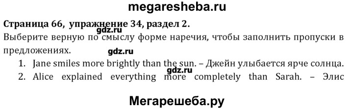 Подробный решебник (ГДЗ) по Английскому языку за 8 (восьмой) класс Student's Book - готовый ответ раздел 2 - 34. Авторы учебника: Афанасьева, Михеева, Углубленный уровень. Издательство: Просвещение 2014.