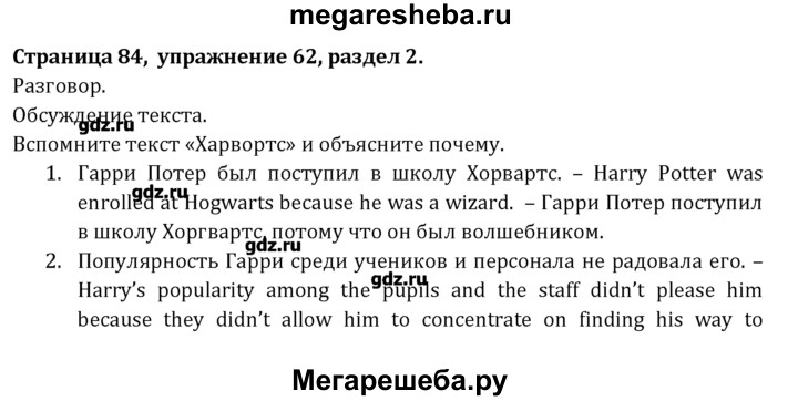 Подробный решебник (ГДЗ) по Английскому языку за 8 (восьмой) класс Student's Book - готовый ответ раздел 2 - 62. Авторы учебника: Афанасьева, Михеева, Углубленный уровень. Издательство: Просвещение 2014.