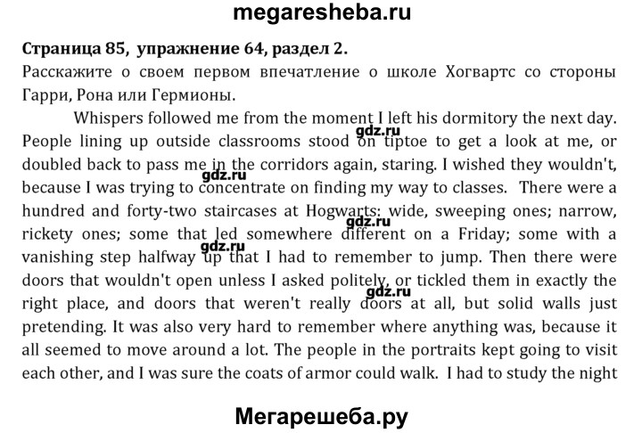 Подробный решебник (ГДЗ) по Английскому языку за 8 (восьмой) класс Student's Book - готовый ответ раздел 2 - 64. Авторы учебника: Афанасьева, Михеева, Углубленный уровень. Издательство: Просвещение 2014.