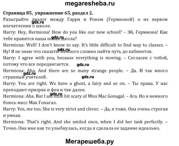 Подробный решебник (ГДЗ) по Английскому языку за 8 (восьмой) класс Student's Book - готовый ответ раздел 2 - 65. Авторы учебника: Афанасьева, Михеева, Углубленный уровень. Издательство: Просвещение 2014.