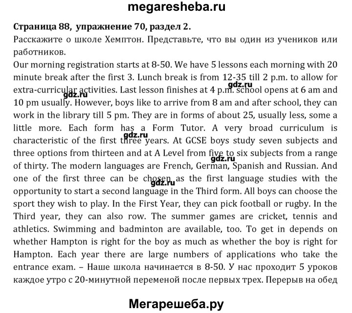Подробный решебник (ГДЗ) по Английскому языку за 8 (восьмой) класс Student's Book - готовый ответ раздел 2 - 70. Авторы учебника: Афанасьева, Михеева, Углубленный уровень. Издательство: Просвещение 2014.