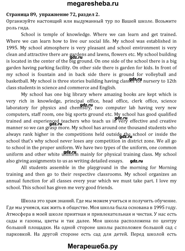 Подробный решебник (ГДЗ) по Английскому языку за 8 (восьмой) класс Student's Book - готовый ответ раздел 2 - 72. Авторы учебника: Афанасьева, Михеева, Углубленный уровень. Издательство: Просвещение 2014.