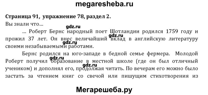 Подробный решебник (ГДЗ) по Английскому языку за 8 (восьмой) класс Student's Book - готовый ответ раздел 2 - 78. Авторы учебника: Афанасьева, Михеева, Углубленный уровень. Издательство: Просвещение 2014.