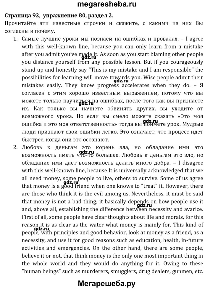 Подробный решебник (ГДЗ) по Английскому языку за 8 (восьмой) класс Student's Book - готовый ответ раздел 2 - 80. Авторы учебника: Афанасьева, Михеева, Углубленный уровень. Издательство: Просвещение 2014.