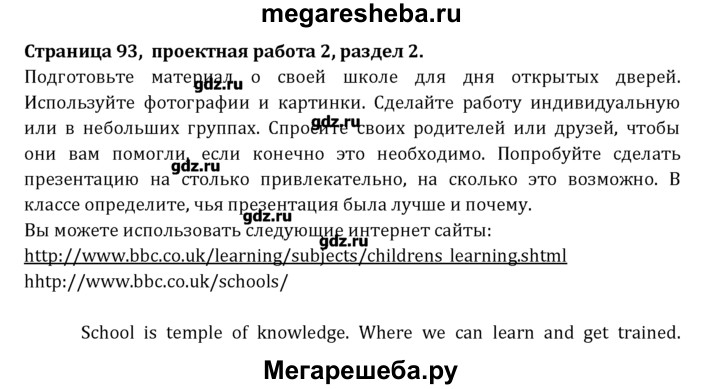 Подробный решебник (ГДЗ) по Английскому языку за 8 (восьмой) класс Student's Book - готовый ответ раздел 2 - Проектная работа. Авторы учебника: Афанасьева, Михеева, Углубленный уровень. Издательство: Просвещение 2014.