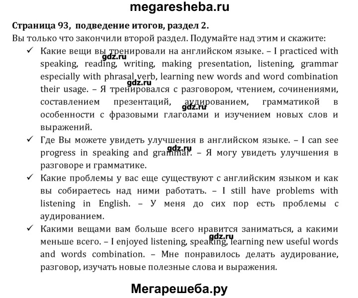 ГДЗ по английскому языку 8 класс Афанасьева Student's Book Углубленный уровень раздел 2 - Подведение итогов