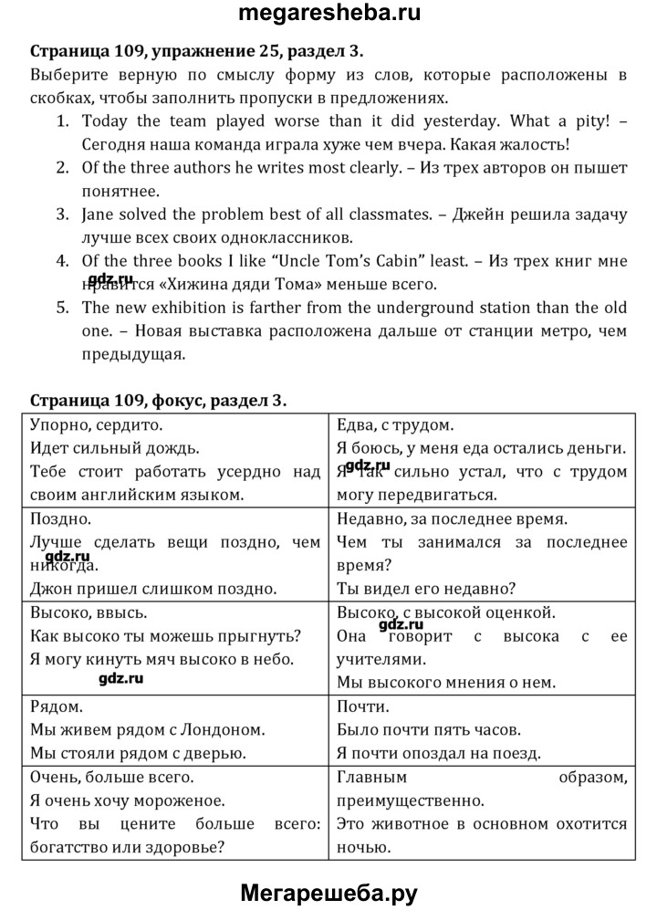 Подробный решебник (ГДЗ) по Английскому языку за 8 (восьмой) класс Student's Book - готовый ответ раздел 3 - 25. Авторы учебника: Афанасьева, Михеева, Углубленный уровень. Издательство: Просвещение 2014.