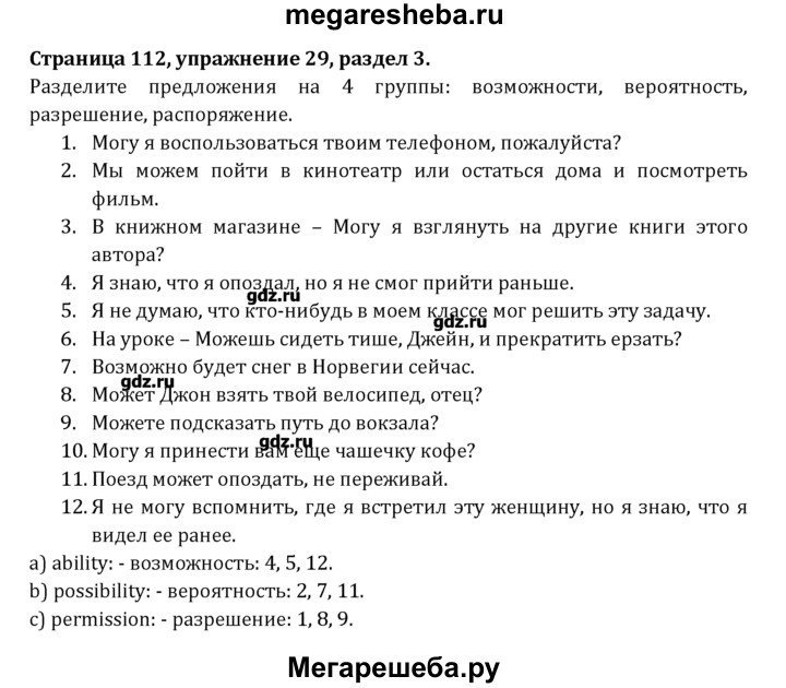 Подробный решебник (ГДЗ) по Английскому языку за 8 (восьмой) класс Student's Book - готовый ответ раздел 3 - 29. Авторы учебника: Афанасьева, Михеева, Углубленный уровень. Издательство: Просвещение 2014.