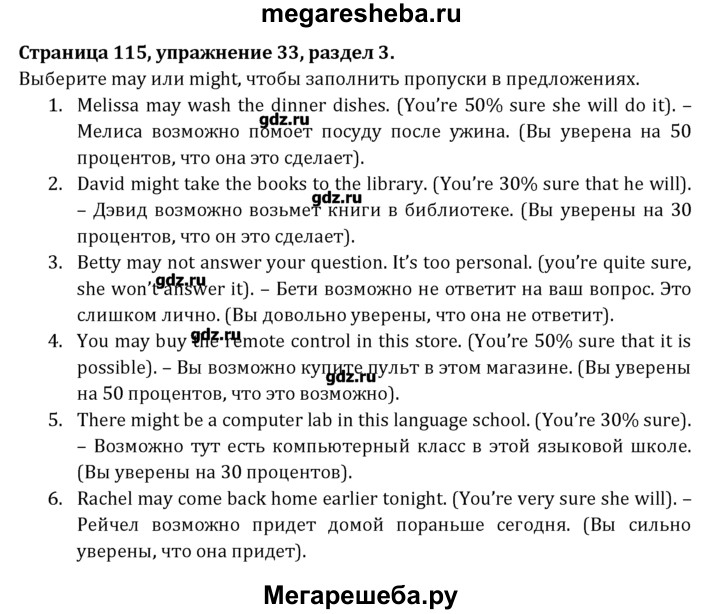 Подробный решебник (ГДЗ) по Английскому языку за 8 (восьмой) класс Student's Book - готовый ответ раздел 3 - 33. Авторы учебника: Афанасьева, Михеева, Углубленный уровень. Издательство: Просвещение 2014.