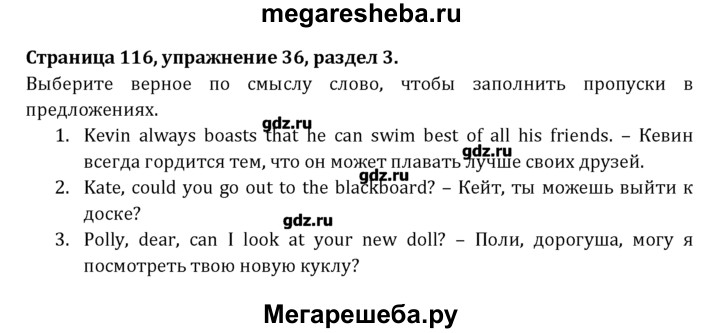 Подробный решебник (ГДЗ) по Английскому языку за 8 (восьмой) класс Student's Book - готовый ответ раздел 3 - 36. Авторы учебника: Афанасьева, Михеева, Углубленный уровень. Издательство: Просвещение 2014.