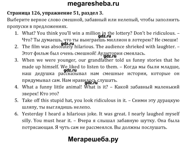 Подробный решебник (ГДЗ) по Английскому языку за 8 (восьмой) класс Student's Book - готовый ответ раздел 3 - 51. Авторы учебника: Афанасьева, Михеева, Углубленный уровень. Издательство: Просвещение 2014.