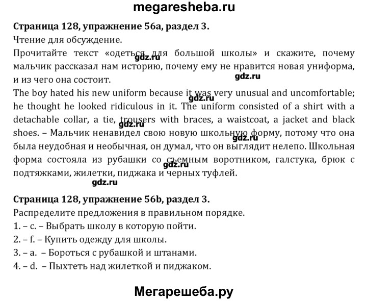 Подробный решебник (ГДЗ) по Английскому языку за 8 (восьмой) класс Student's Book - готовый ответ раздел 3 - 56. Авторы учебника: Афанасьева, Михеева, Углубленный уровень. Издательство: Просвещение 2014.