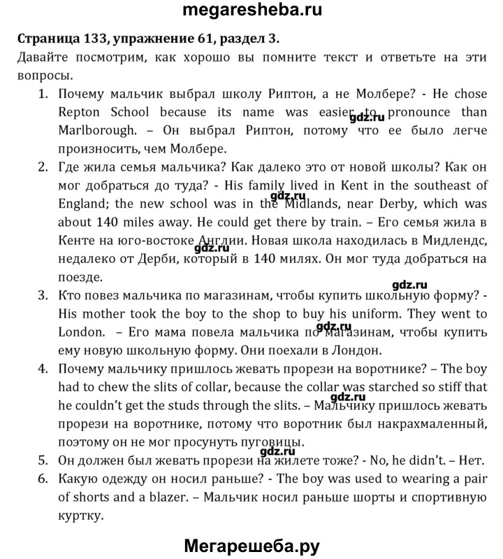 Подробный решебник (ГДЗ) по Английскому языку за 8 (восьмой) класс Student's Book - готовый ответ раздел 3 - 61. Авторы учебника: Афанасьева, Михеева, Углубленный уровень. Издательство: Просвещение 2014.