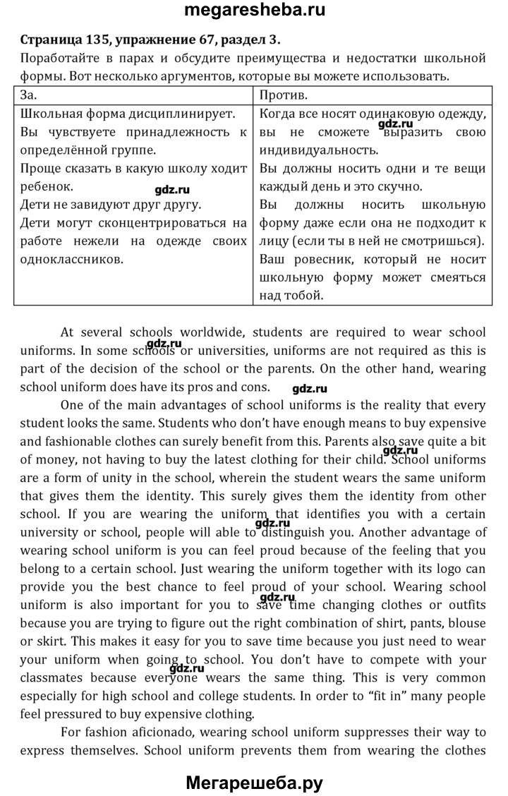 Подробный решебник (ГДЗ) по Английскому языку за 8 (восьмой) класс Student's Book - готовый ответ раздел 3 - 67. Авторы учебника: Афанасьева, Михеева, Углубленный уровень. Издательство: Просвещение 2014.
