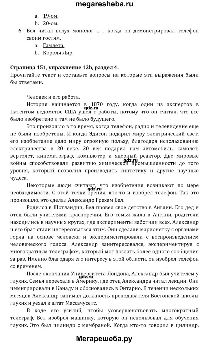 Подробный решебник (ГДЗ) по Английскому языку за 8 (восьмой) класс Student's Book - готовый ответ раздел 4 - 12. Авторы учебника: Афанасьева, Михеева, Углубленный уровень. Издательство: Просвещение 2014.