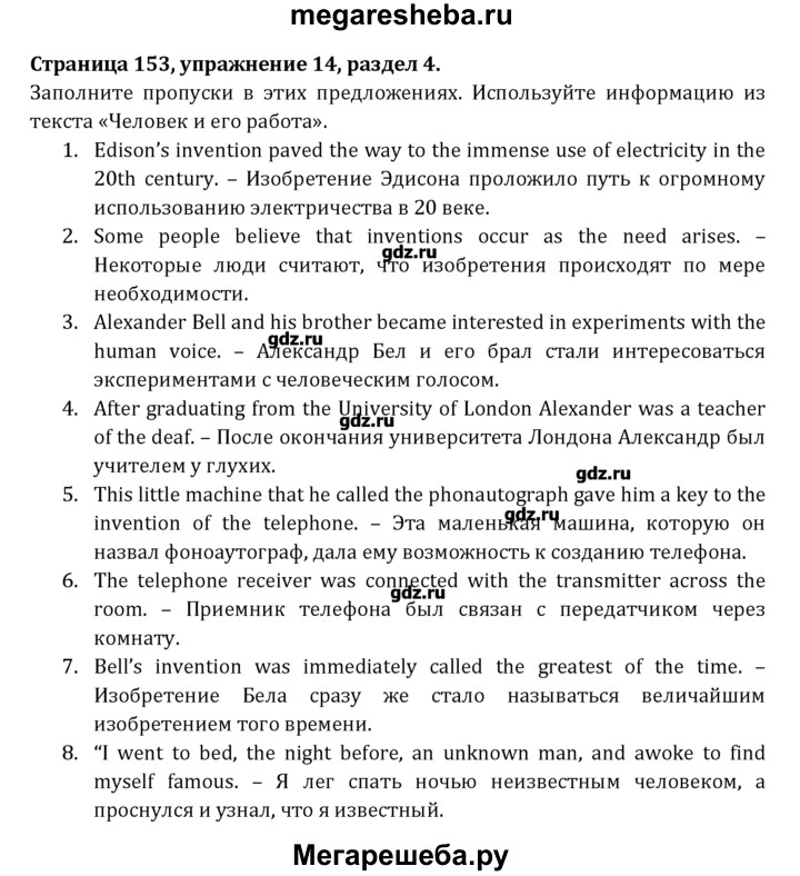 Подробный решебник (ГДЗ) по Английскому языку за 8 (восьмой) класс Student's Book - готовый ответ раздел 4 - 14. Авторы учебника: Афанасьева, Михеева, Углубленный уровень. Издательство: Просвещение 2014.