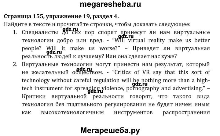 Подробный решебник (ГДЗ) по Английскому языку за 8 (восьмой) класс Student's Book - готовый ответ раздел 4 - 19. Авторы учебника: Афанасьева, Михеева, Углубленный уровень. Издательство: Просвещение 2014.