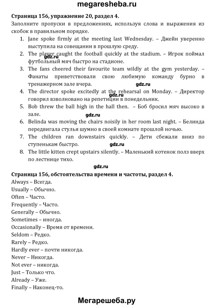 Подробный решебник (ГДЗ) по Английскому языку за 8 (восьмой) класс Student's Book - готовый ответ раздел 4 - 20. Авторы учебника: Афанасьева, Михеева, Углубленный уровень. Издательство: Просвещение 2014.