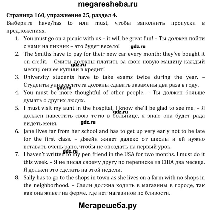 Подробный решебник (ГДЗ) по Английскому языку за 8 (восьмой) класс Student's Book - готовый ответ раздел 4 - 25. Авторы учебника: Афанасьева, Михеева, Углубленный уровень. Издательство: Просвещение 2014.