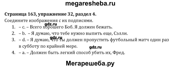 Подробный решебник (ГДЗ) по Английскому языку за 8 (восьмой) класс Student's Book - готовый ответ раздел 4 - 32. Авторы учебника: Афанасьева, Михеева, Углубленный уровень. Издательство: Просвещение 2014.