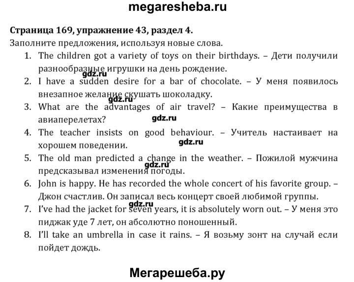 Подробный решебник (ГДЗ) по Английскому языку за 8 (восьмой) класс Student's Book - готовый ответ раздел 4 - 43. Авторы учебника: Афанасьева, Михеева, Углубленный уровень. Издательство: Просвещение 2014.