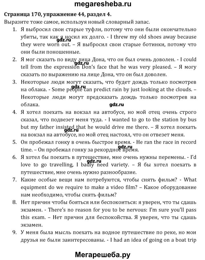 Подробный решебник (ГДЗ) по Английскому языку за 8 (восьмой) класс Student's Book - готовый ответ раздел 4 - 44. Авторы учебника: Афанасьева, Михеева, Углубленный уровень. Издательство: Просвещение 2014.