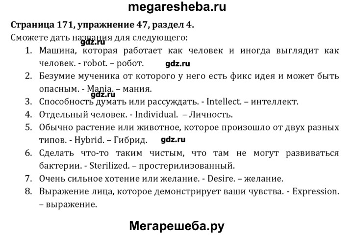 Подробный решебник (ГДЗ) по Английскому языку за 8 (восьмой) класс Student's Book - готовый ответ раздел 4 - 47. Авторы учебника: Афанасьева, Михеева, Углубленный уровень. Издательство: Просвещение 2014.
