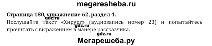 Подробный решебник (ГДЗ) по Английскому языку за 8 (восьмой) класс Student's Book - готовый ответ раздел 4 - 62. Авторы учебника: Афанасьева, Михеева, Углубленный уровень. Издательство: Просвещение 2014.