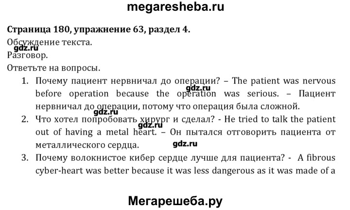 Подробный решебник (ГДЗ) по Английскому языку за 8 (восьмой) класс Student's Book - готовый ответ раздел 4 - 63. Авторы учебника: Афанасьева, Михеева, Углубленный уровень. Издательство: Просвещение 2014.