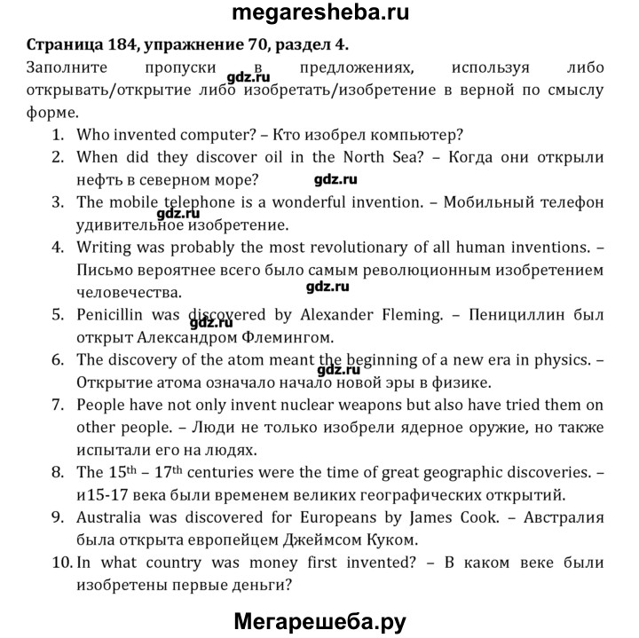 Подробный решебник (ГДЗ) по Английскому языку за 8 (восьмой) класс Student's Book - готовый ответ раздел 4 - 70. Авторы учебника: Афанасьева, Михеева, Углубленный уровень. Издательство: Просвещение 2014.