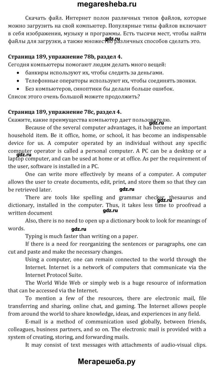 Подробный решебник (ГДЗ) по Английскому языку за 8 (восьмой) класс Student's Book - готовый ответ раздел 4 - 78. Авторы учебника: Афанасьева, Михеева, Углубленный уровень. Издательство: Просвещение 2014.
